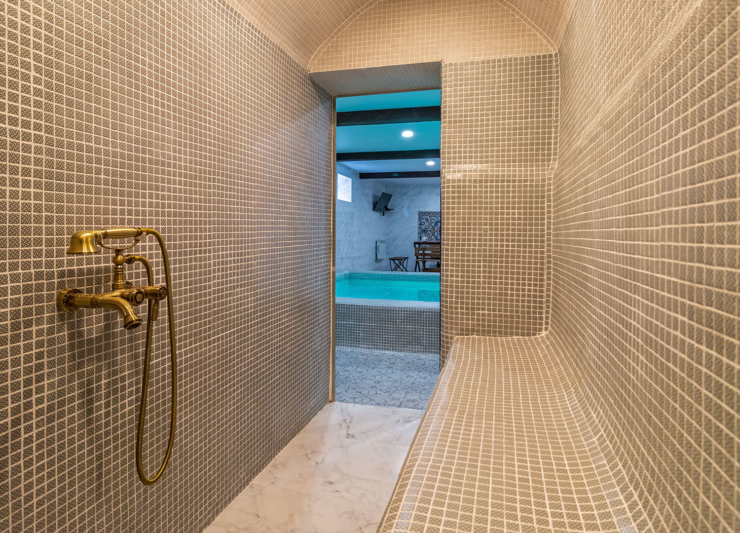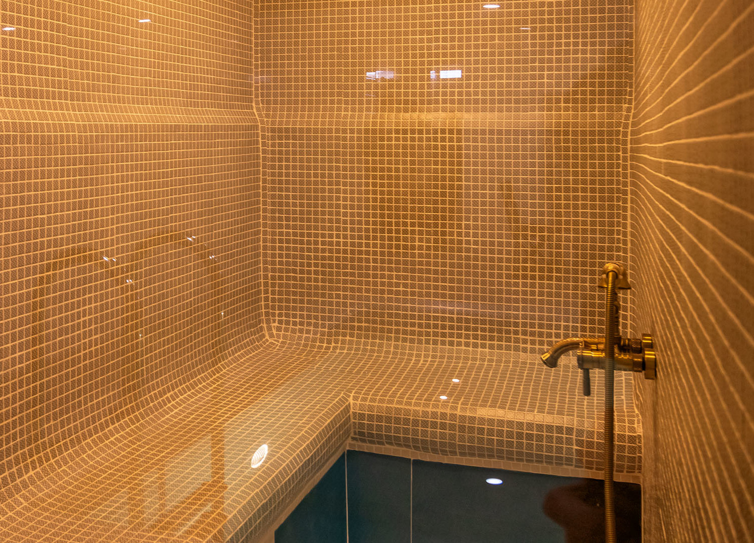 Хамам выгодно отличается от других типов бань невысокой температурой, приятным влажным воздухом, а так же подогревом пола, лежаков и стен.