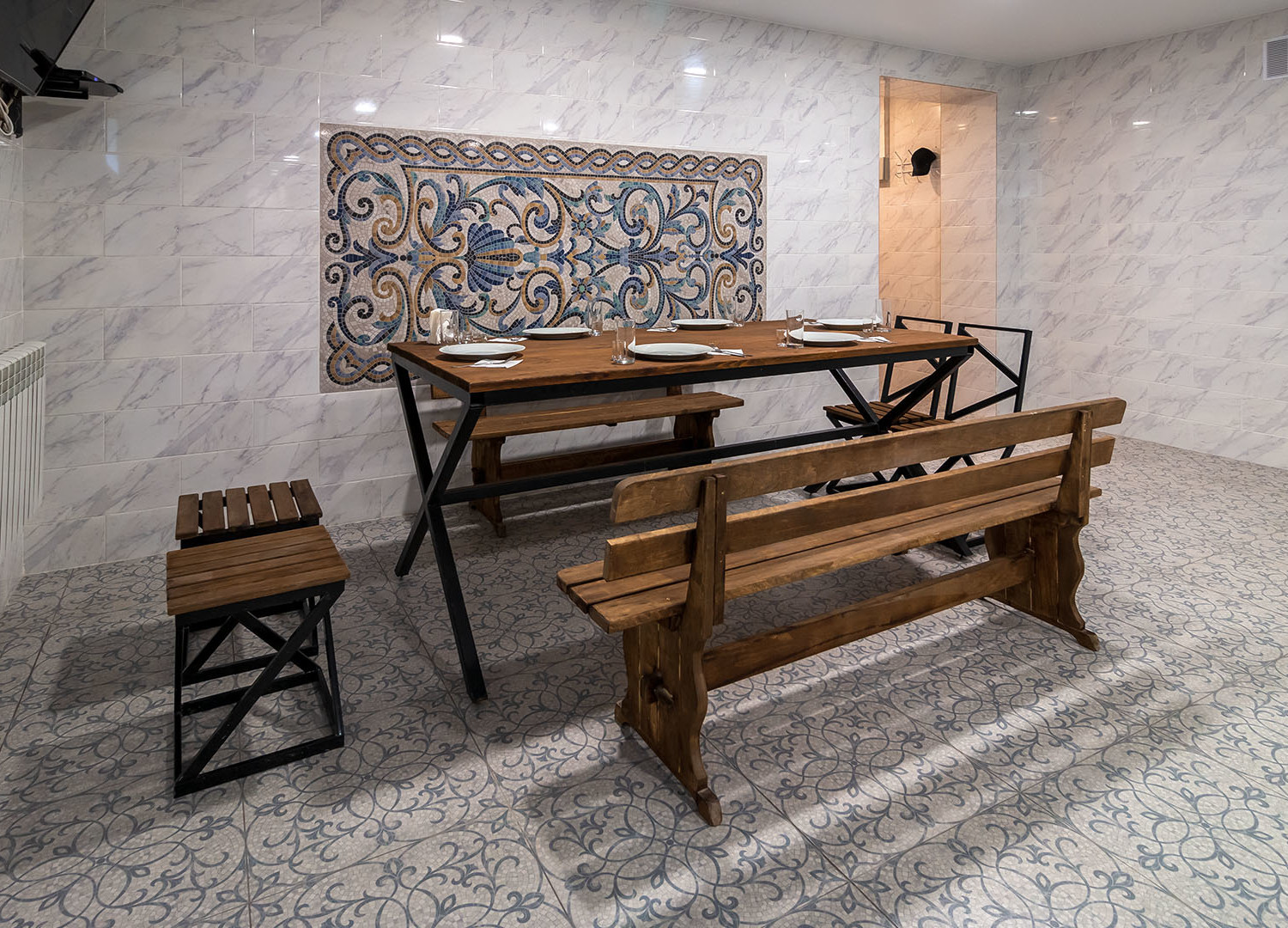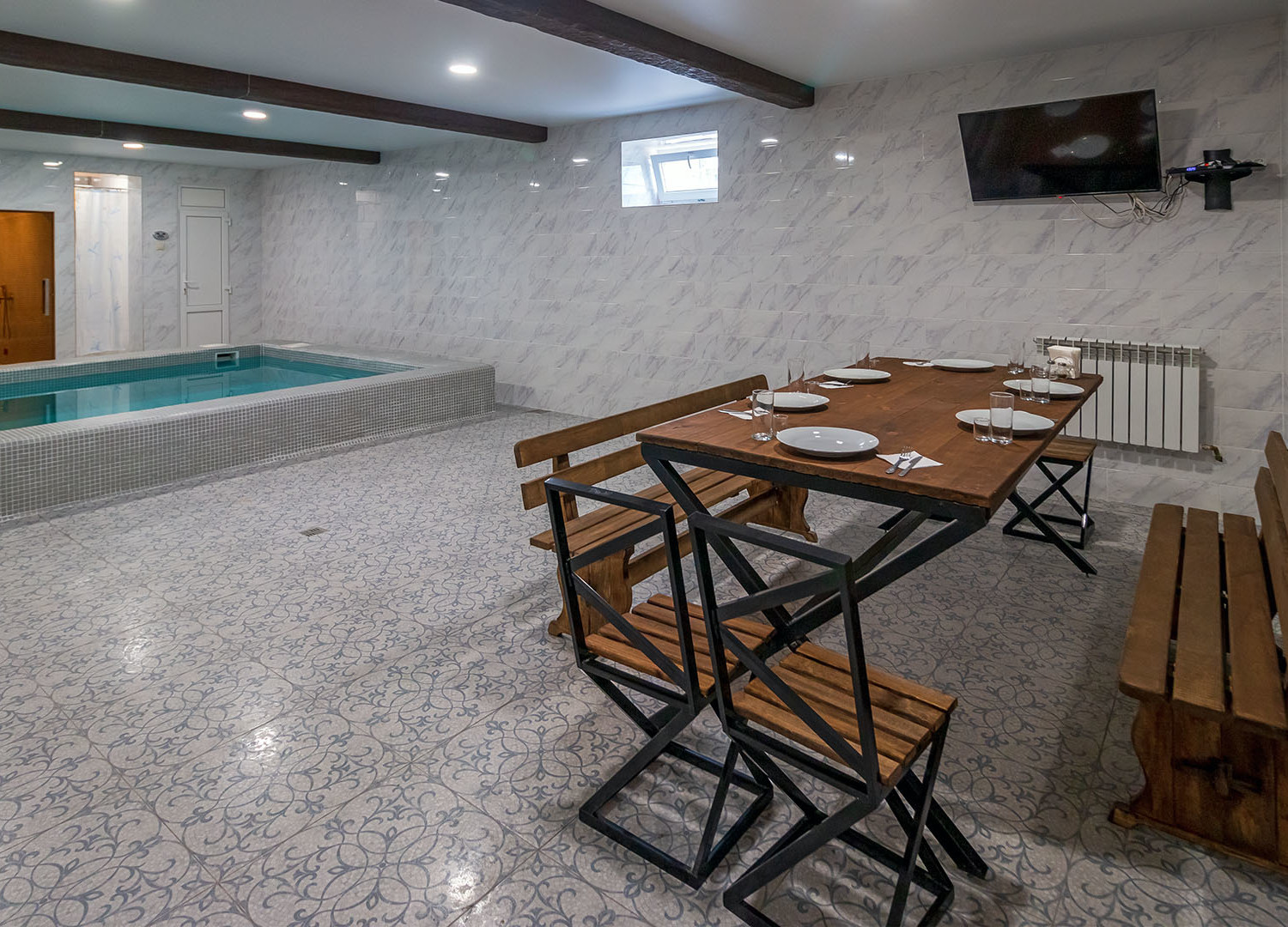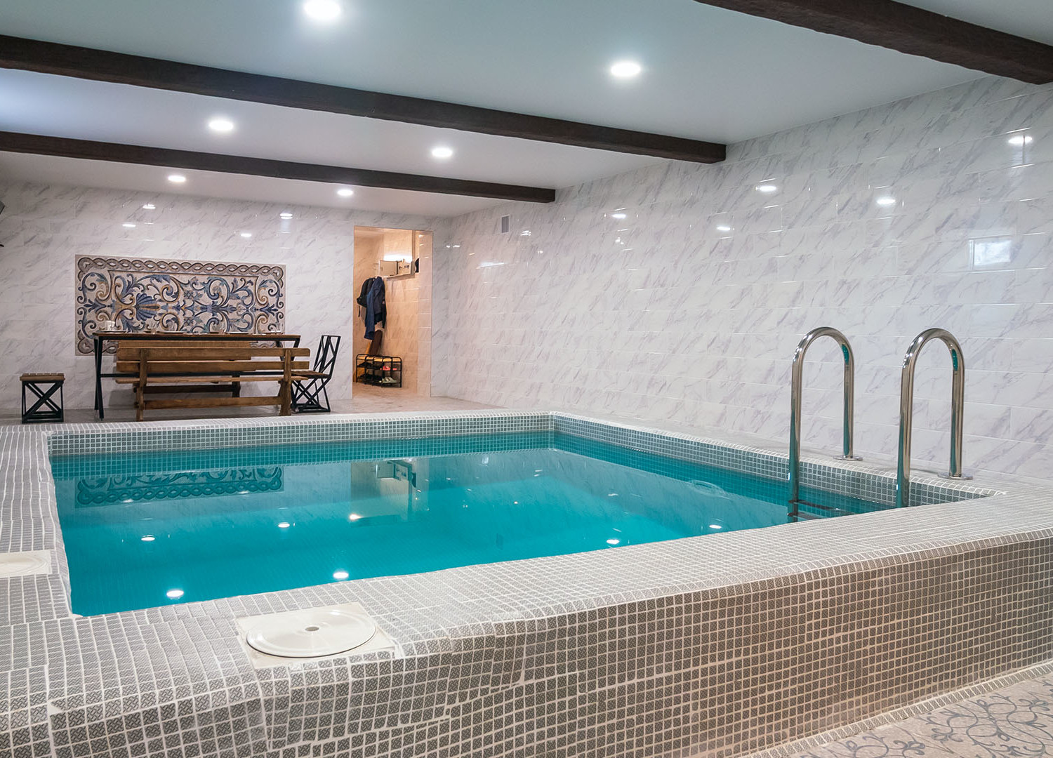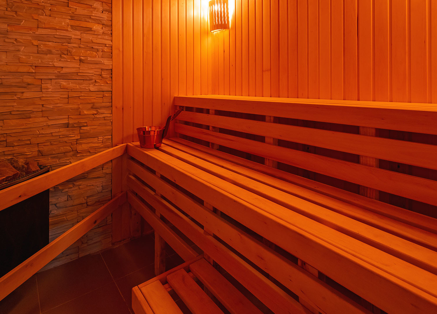 В зале располагается финская сауна и турецкий хамам.